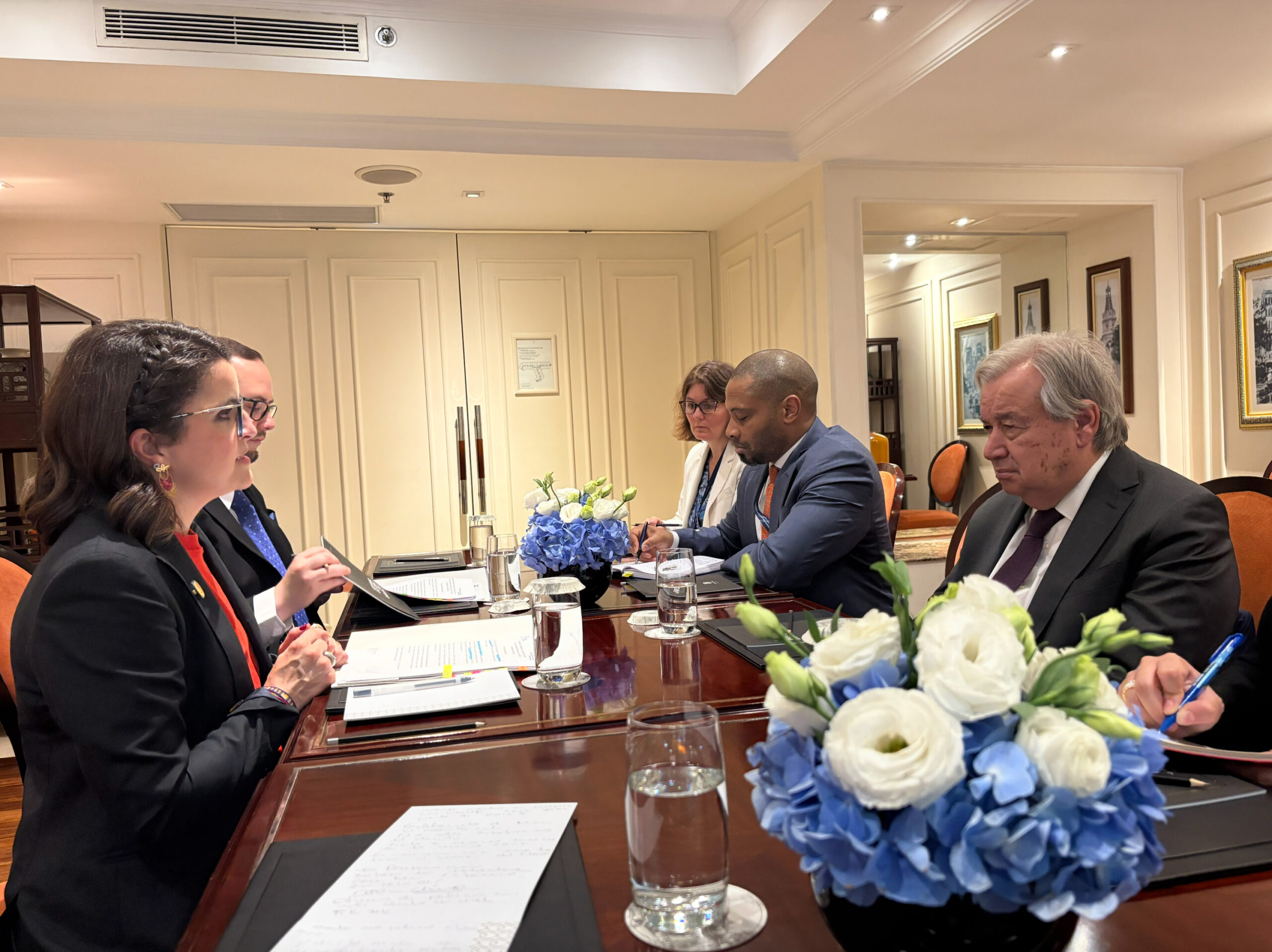 La agenda de la Vicepresidenta incluyó reuniones bilaterales con el Secretario General de las Naciones Unidas, António Guterres con quien abordó temas de cooperación multilateral, fortalecimiento institucional y políticas conjuntas de ciberseguridad.