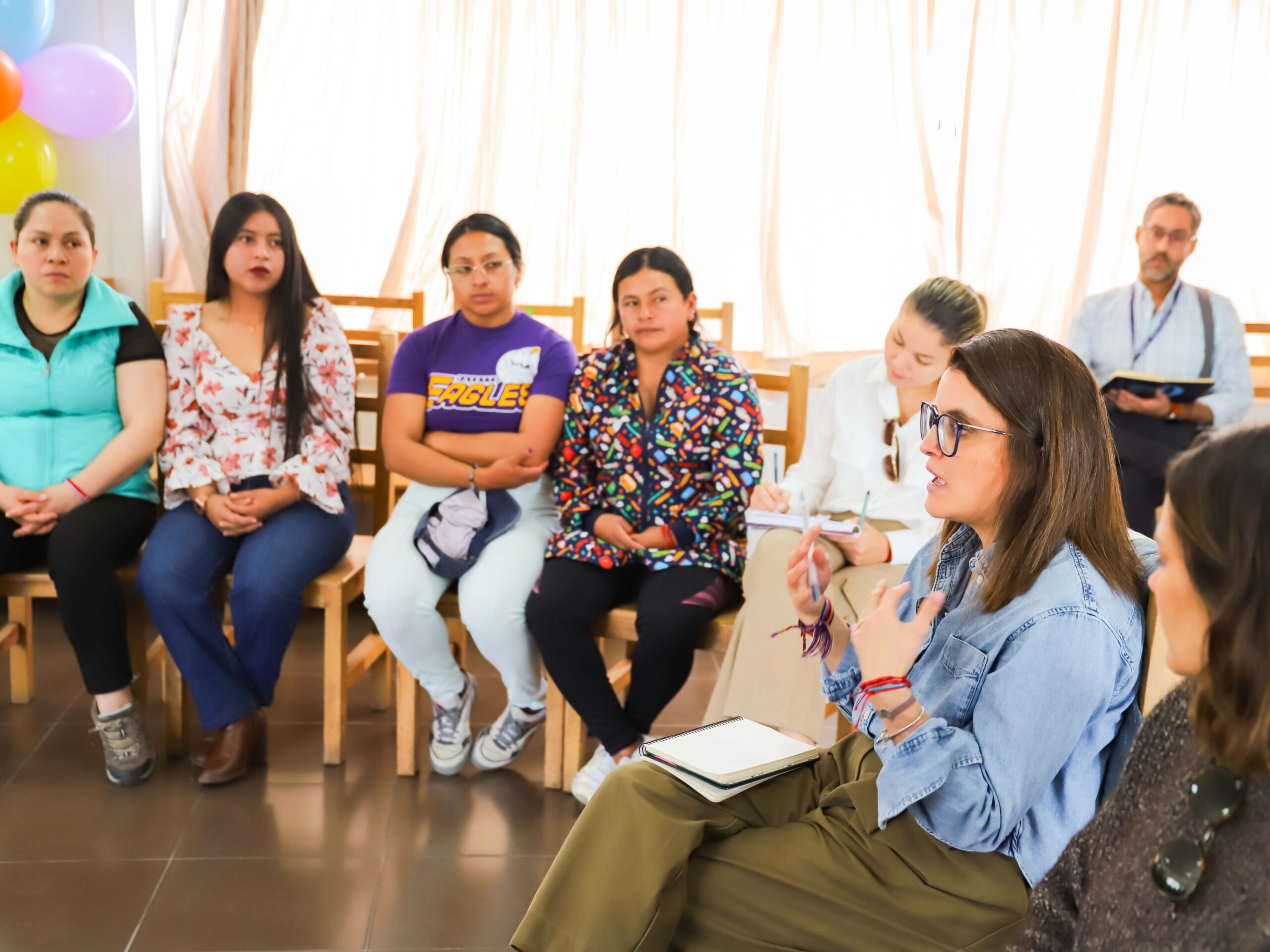 La vicepresidenta, María José Pinto, también mantuvo un encuentro con las educadoras del Ministerio de Desarrollo Humano, responsables de promover el desarrollo infantil integral de niñas y niños de 0 a 3 años, así como de gestantes en situación de vulnerabilidad. Durante la reunión, escuchó sus necesidades y recomendaciones con el propósito de fortalecer los servicios que se brindan tanto en centros infantiles como en la modalidad de visitas domiciliarias.