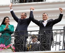 Quito (Pichincha).- El tradicional Relevo de Guardia Presidencial que se realizó este lunes, 14 de julio contó con la presencia del primer y segundo Mandatario, Rafael Correa Delgado y Jorge Glas Espinel.