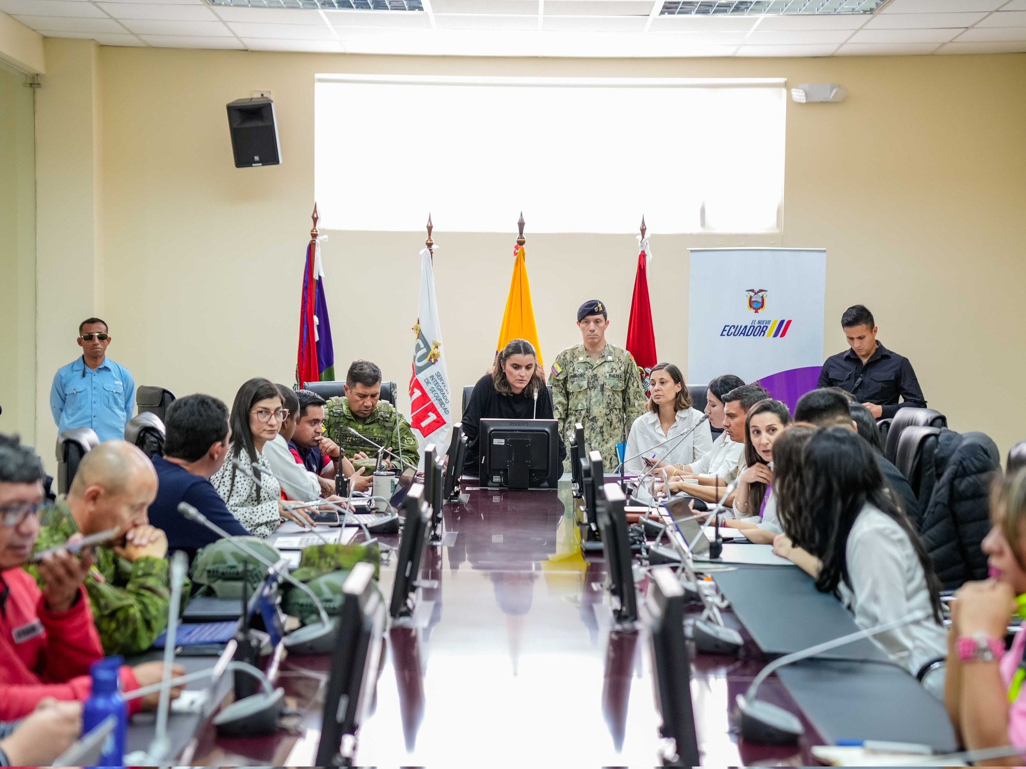 La vicepresidenta María José Pinto sostuvo hoy, desde el ECU 911 Ibarra, una reunión de monitoreo y coordinación con equipos técnicos y autoridades locales para fortalecer la atención, la seguridad y la respuesta en Imbabura.
