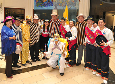 El Alcalde de Latacunga acudió a la Vicepresidencia acompañado por una comitiva que incluyó a concejales, concejalas, personajes de la fiesta, músicos y danzantes.