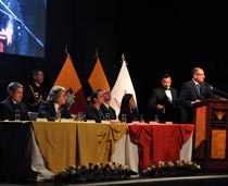 Quito (Pichincha).- «Hoy no nos convoca la memoria de la batalla, nos ha reunido aquí la celebración de la vida y del futuro del país. El 24 de mayo de 1822 se enfrentó el futuro en contra del colonialismo más brutal», expresó el vicepresidente de la República, Jorge Glas Espinel, el sábado, 24 de mayo, durante la Sesión Solemne de conmemoración los 192 años de la Batalla de Pichincha, y la posesión del Prefecto y Viceprefecta de la provincia Gustavo Baroja y Marcela Costales.