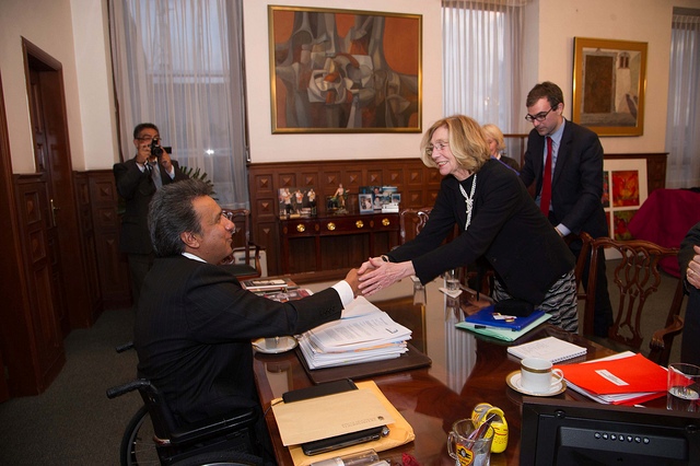 Quito, 4 de diciembre 2012. Vicepresidente Lenín Moreno se reunió con la ministra de Comercio de Francia, Nicole Bricq y una delegación de ese país, en el marco de la suscripción del protocolo de financiamiento del tranvía de Cuenca. Es el primer país de América Latina que visita la ministra francesa.